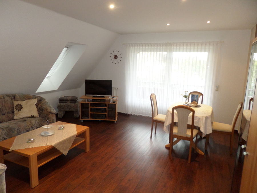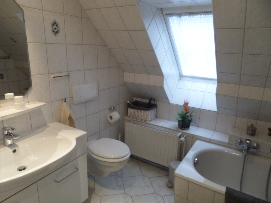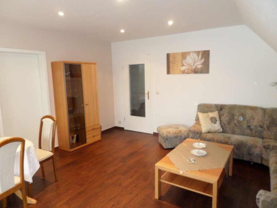 Die Wohnung besteht aus einem großem Wohnzimmer, 2 Schlafzimmern, einer voll ausgestatteten Küche, dem Bad mit Wanne und Dusche sowie einem Gäste-WC.